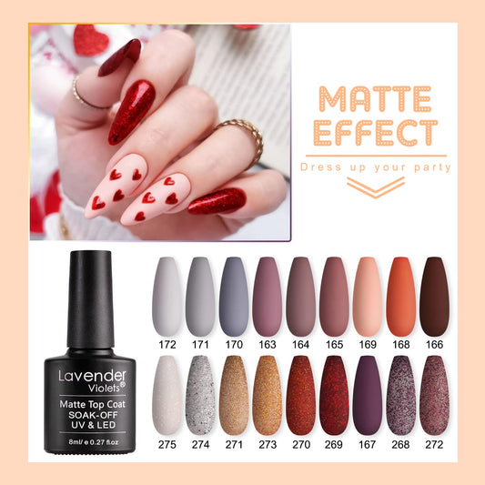 Lavender Violets 21 Stück Gel Nagellack Set Glitzer Rot Gold Shellac Nude Grau Orange Gelb RoseFarben UV LED Soak Off Base,Matte,Top Coat Unter- & Überlacke Maniküre Kits Nägel F987