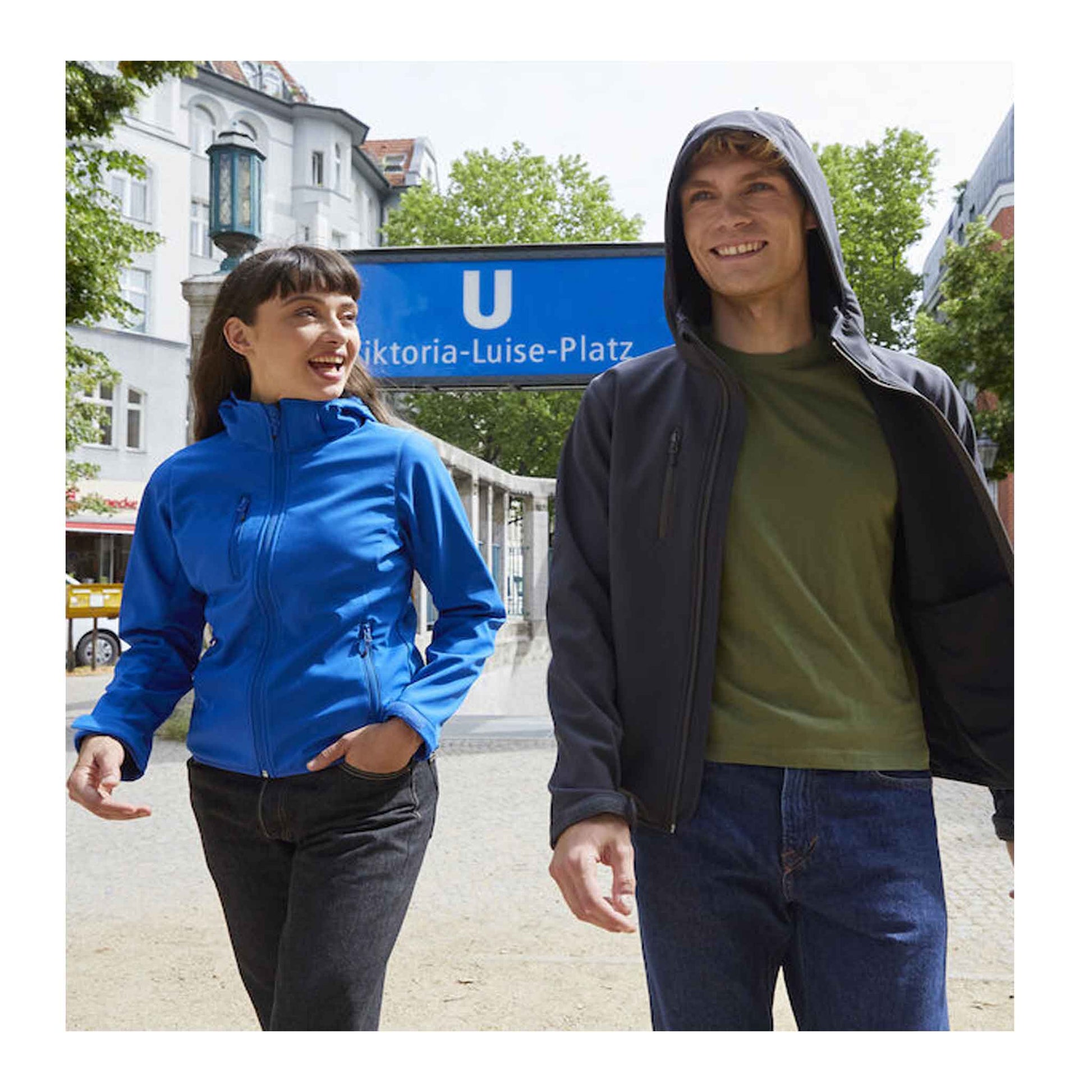 3-Lagen-Softshell-Kapuzenjacke mit Recycling-Polyester. Ton-in-Ton-Wendereissverschluss vorne in der Mitte und drei Aussentaschen. Zwei Innentaschen. Abnehmbare Kapuze. Elastisches Band am Bund und verstellbare Klettverschlüsse an den Ärmeln. WP 3000 / MVP 1000.