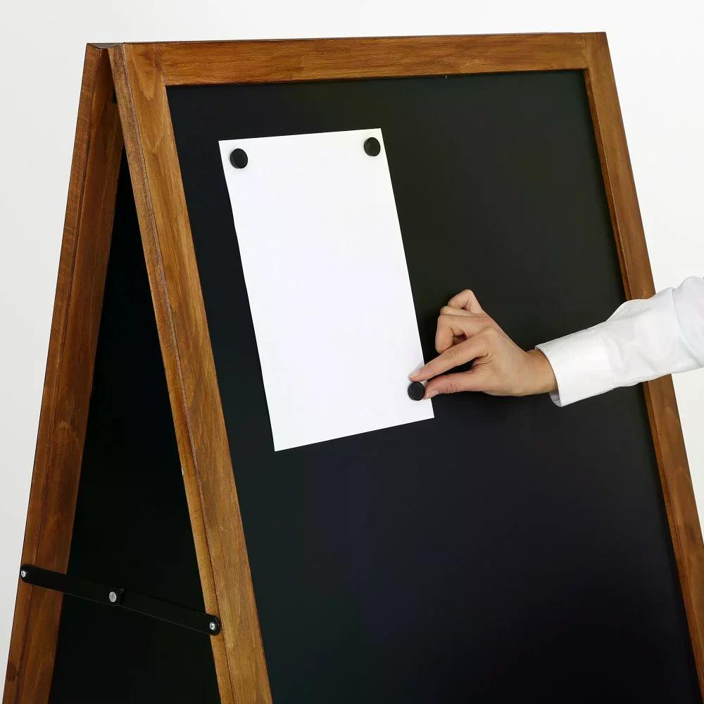 Dieser elegante Holz-Kundenstopper in Dunkelbraun überzeugt mit einer grosszügigen magnetischen Kreidetafel und eignet sich perfekt für den Einsatz vor Restaurants, Bars, Cafés oder Geschäften. Mit einer Schreibfläche von 119×59 cm hast du viel Platz für Menüs, Tagesangebote oder kreative Botschaften, die deine Kunden direkt ansprechen.
