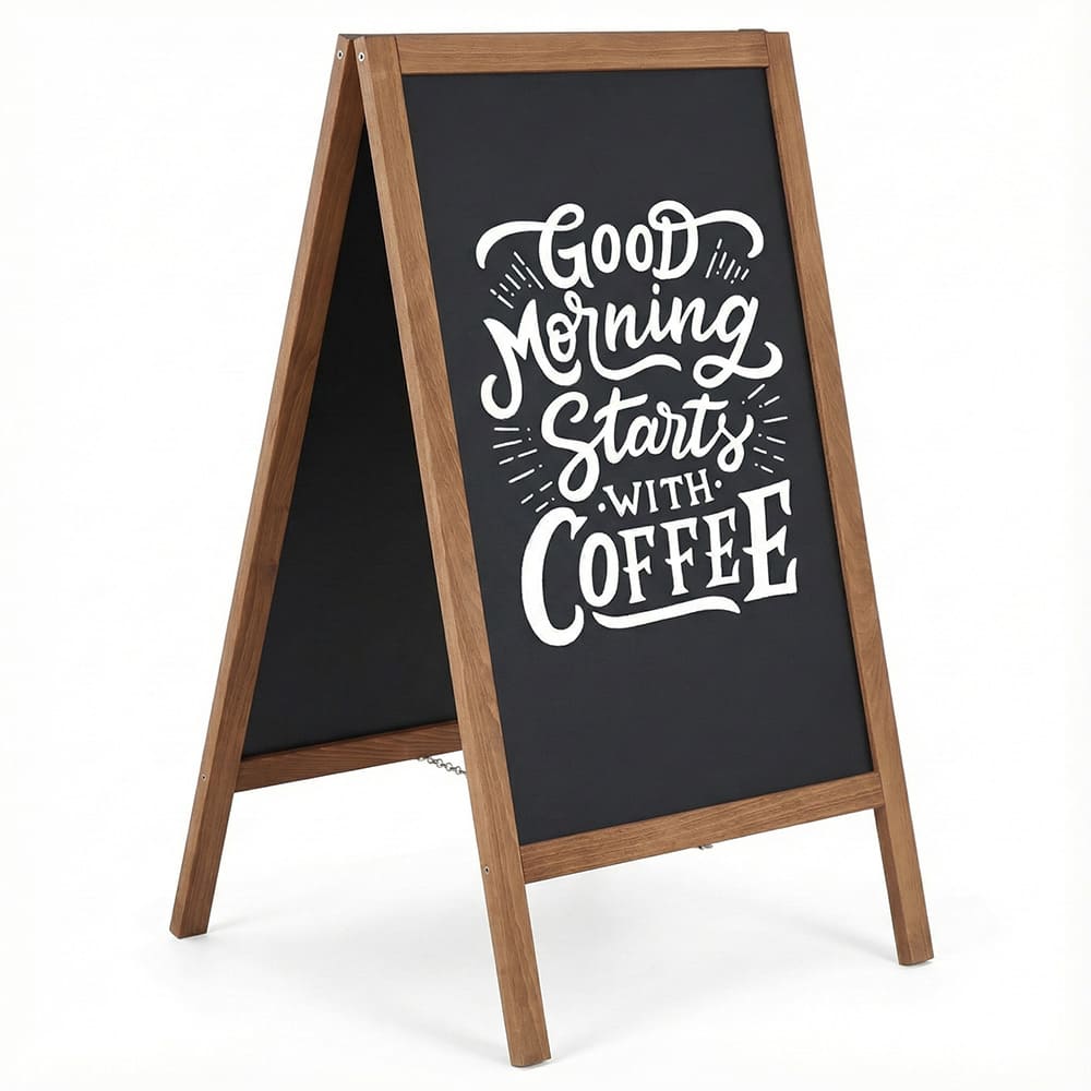 Ob als Menütafel vor deinem Restaurant, als Werbetafel im Eingangsbereich oder als flexibles Infoboard – der magnetische Holz Kundenstopper 95×54 cm Dunkelbraun verbindet natürliche Eleganz mit praktischer Vielseitigkeit. Ideal für alle, die ihre Werbung wetterfest, kreativ und professionell präsentieren möchten.