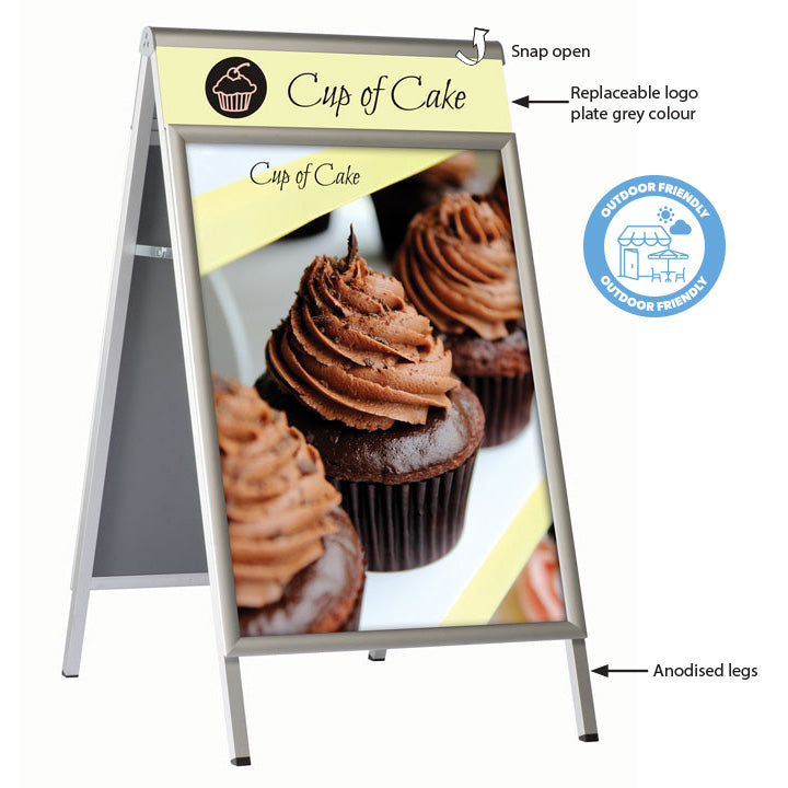 Ganz gleich, ob du Tagesangebote, Aktionen, Events oder Wahlwerbung präsentieren möchtest – mit dem Alu Classic mit Logoplatte ziehst du garantiert die Blicke auf dich.