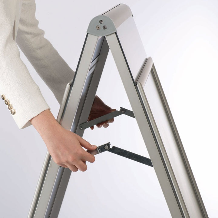 Dank des robusten Aluminiumrahmens und der einfachen Klapptechnik ist der Kundenstopper leicht, langlebig und einfach in der Handhabung.