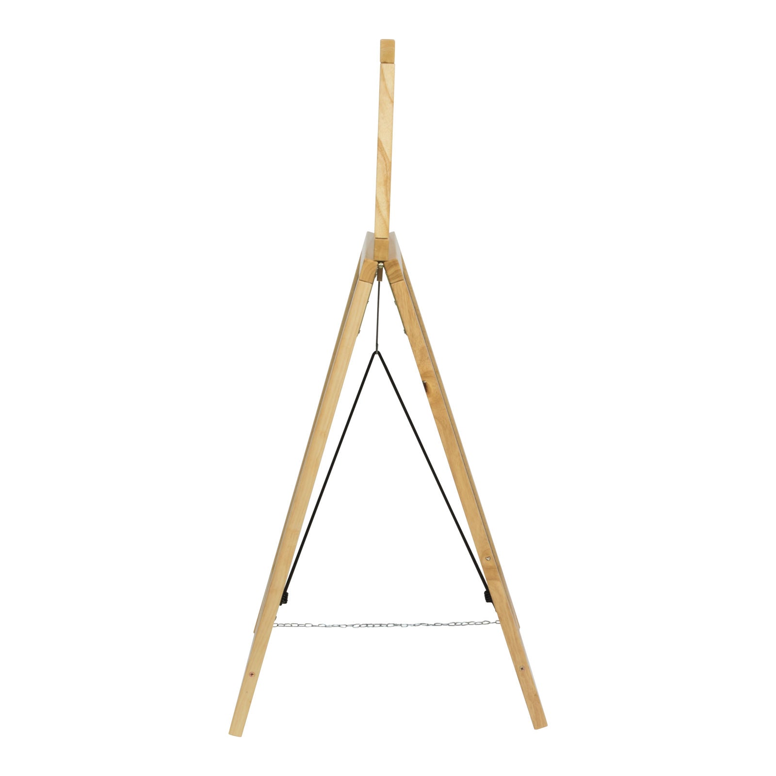Der Rahmen aus hochwertigem Hartholz ist mit witterungsbeständigem Schutzlack versehen, sodass das Holz auch bei Nässe zuverlässig geschützt bleibt. Die beiden beschriftbaren Flächen sind ebenfalls lackiert und durch verstärkte Edelstahlkomponenten sicher verbunden. Eine Abstandskette aus Edelstahl sorgt für optimale Aufstelltiefe und stabilen Halt in der klassischen A-Form. Mit einem Gewicht von rund 11 kg ist der Aufsteller robust genug für den Aussenbereich, sollte jedoch bei starkem Wind nicht im Freien stehen bleiben.