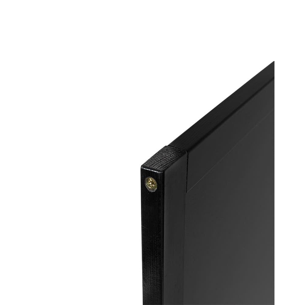 Elegante Securit® Kreidetafel mit Holzrahmen schwarz und T-Fuss Beinen, damit Sie nahezu überall platziert werden kann.